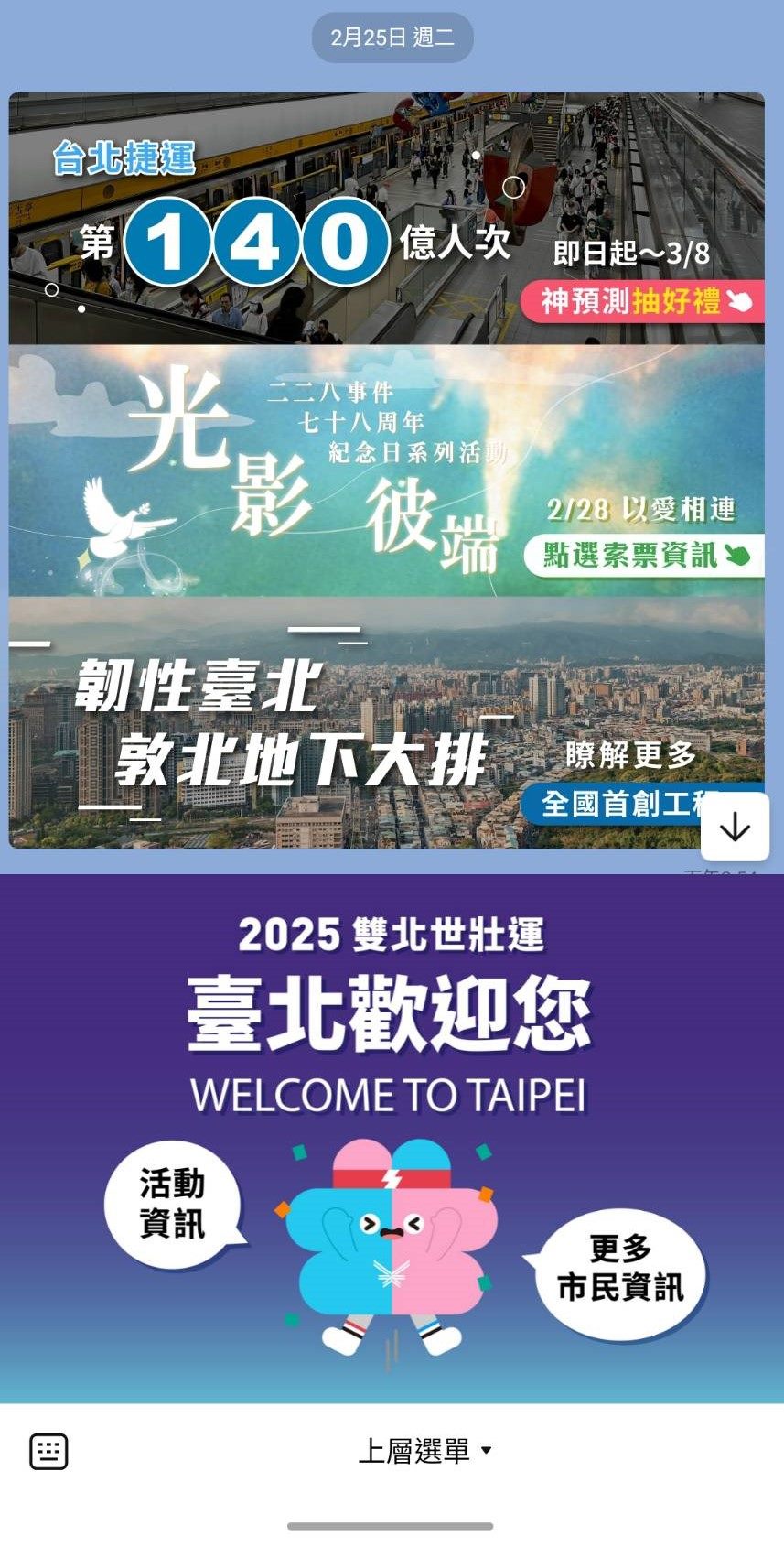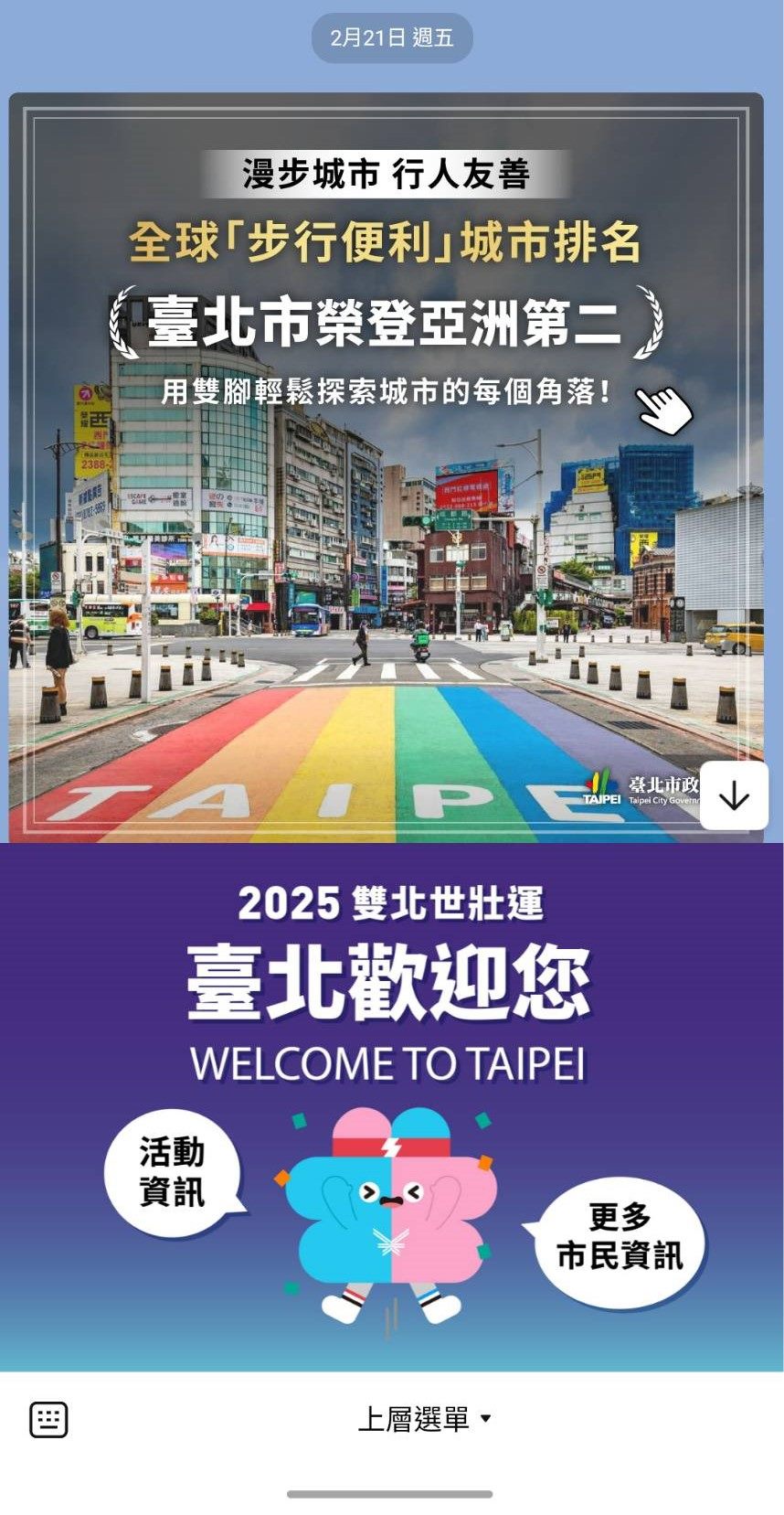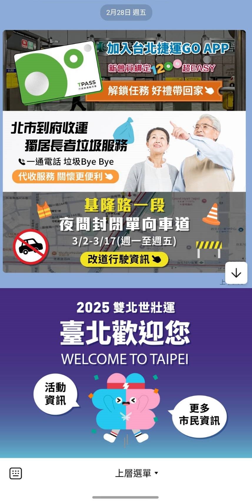 1.社群媒體管道:市府LINE官方帳號發布3則、我是台北人FB發布7則。